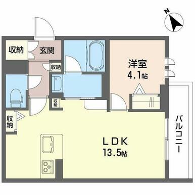 | 間取り | 1LDK(LDK13.5帖 洋室4.1帖) | 主要採光面 | 南東 |